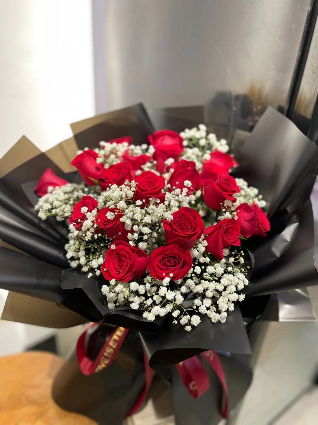 9朵红玫瑰花束 如图包装 |