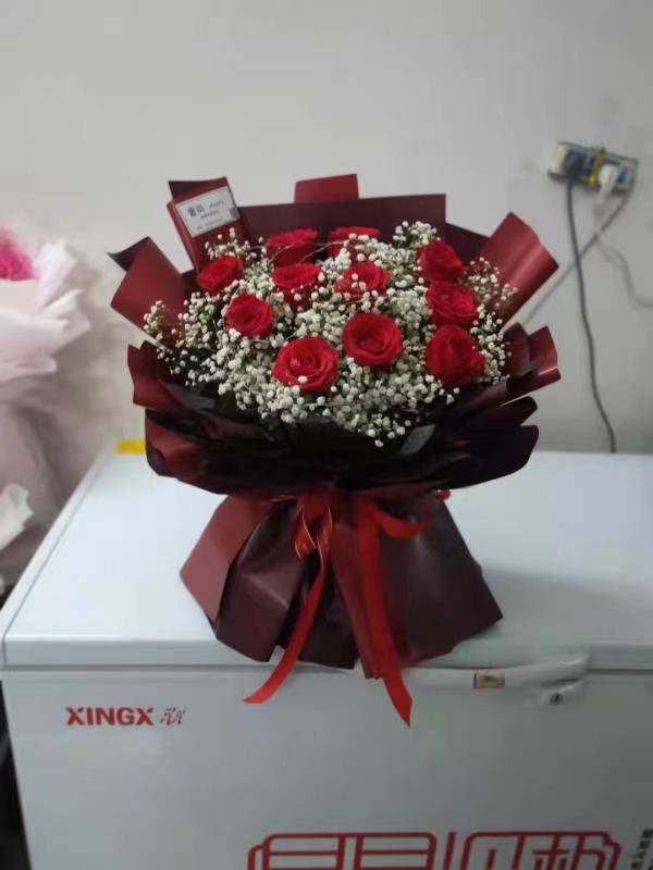 11朵红玫瑰满天星尤加利叶花束 如图 |