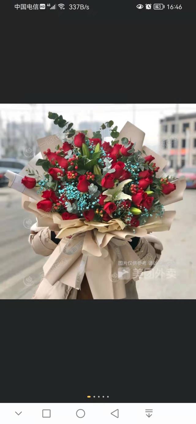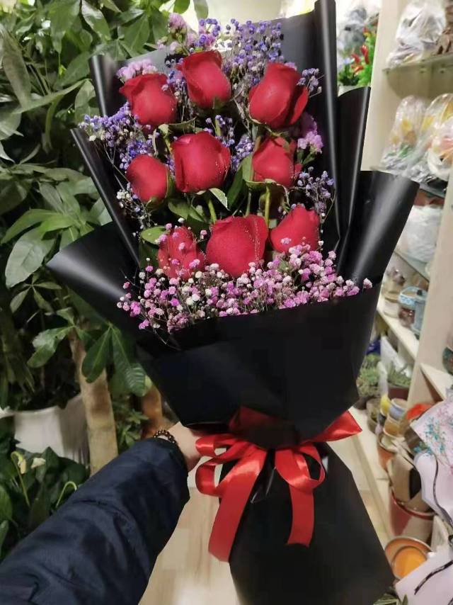 夜上海论坛9朵红玫瑰花束。如图款式包。不能用别的款式和包装纸 |