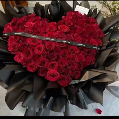 99朵高原红玫瑰心型鲜花束,如图包 |