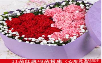 11朵红康+8朵粉康 心形花盒 款式如图 |