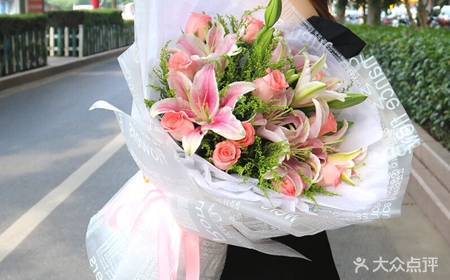11朵粉玫瑰13朵粉百合花束(红色玫瑰和粉色百合好看可以不?),如图包装大气好看,有卡片,按时送达。 |