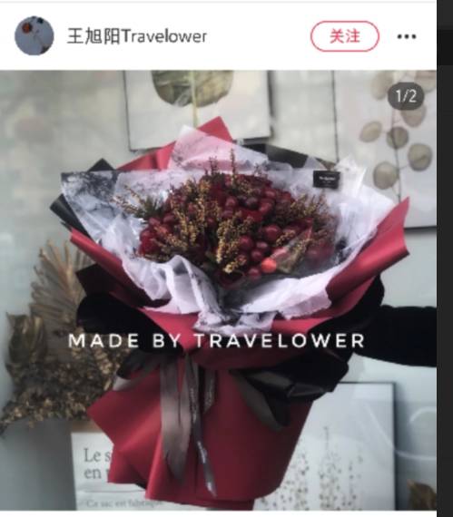 夜上海论坛33车厘子+11红玫瑰,搭配粉色满天星,白色雪梨纸 酒红色雾面纸 咖啡色扎带 做出图片效果 |
