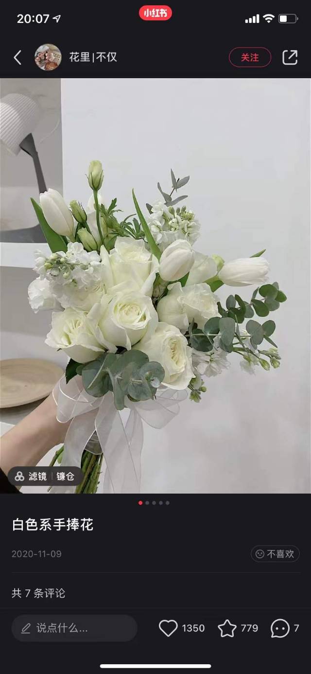 19支白玫瑰手捧花,款式如图 |