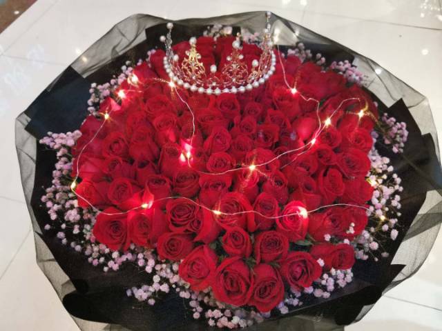 33朵红玫瑰加灯加黑纱和皇冠,如图包 |