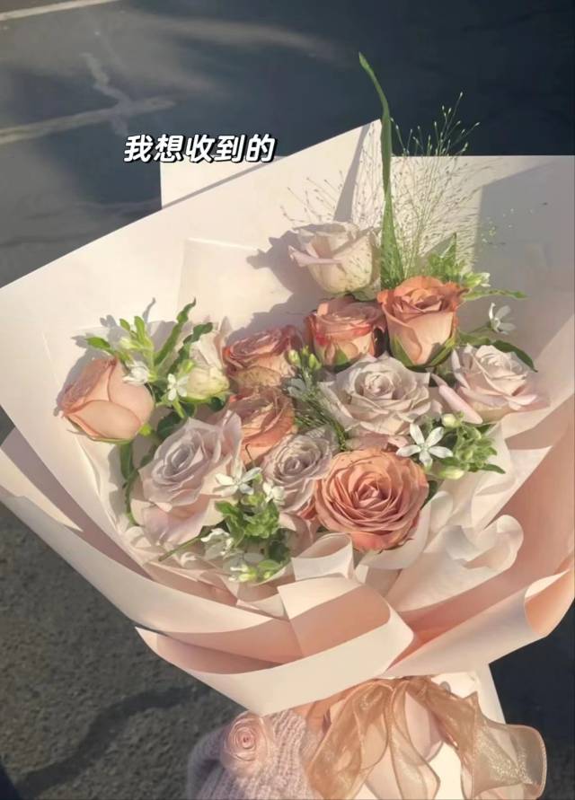 8寸蛋糕一个和一束花如图, 不要小雏菊 不要满天星 外壳包浅粉色