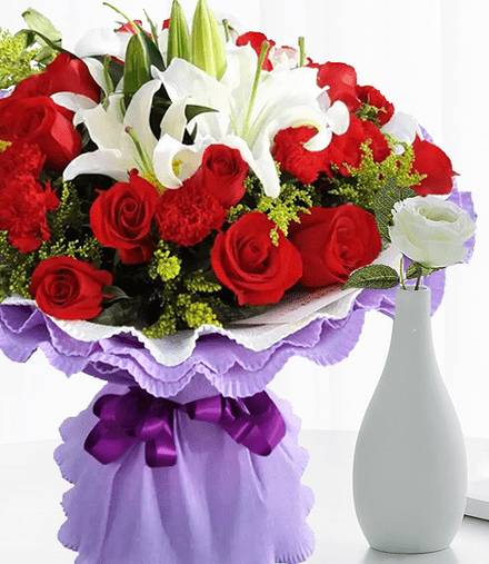 夜上海论坛11朵红玫瑰 +8支红色康乃馨+5百合 如图