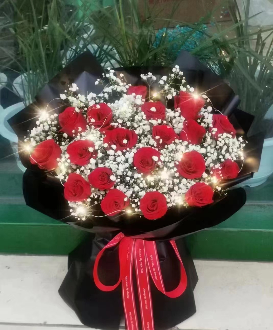 夜上海论坛19朵康乃馨2支粉百合花束,如图包 |