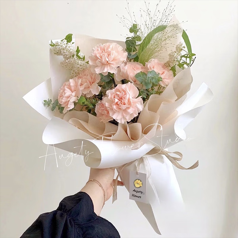 夜上海论坛9朵粉玫瑰2朵白玫瑰混搭满天星花束 |