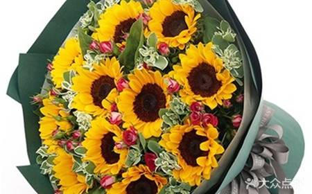 11朵向日葵花束如图(向日葵周围用满天星点缀一下),包装大气好看,按时送达。 |