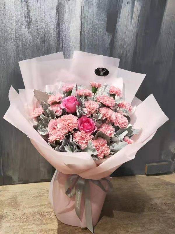 20朵粉康2朵粉玫花束,如图粉色包装纸、大气好看,有卡片,11月22日上午9点前送到。 |