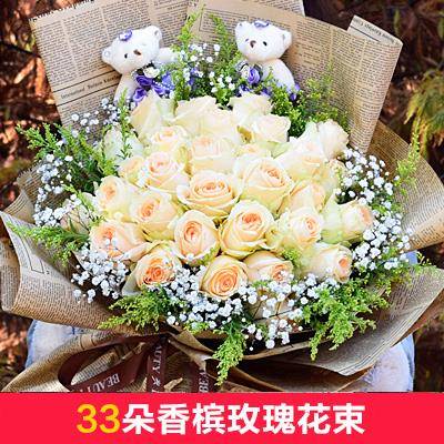 33朵香槟玫瑰花束+2小熊 如图制作 |