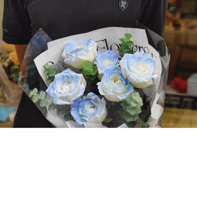 6朵密西根碎冰蓝渐变色玫瑰 |