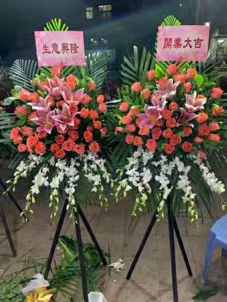 夜上海论坛开业花篮一对,图片仅供供参考,尽快做好送去就行。 |