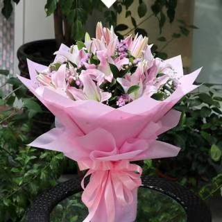 夜上海论坛22朵粉百合花束,花材新鲜,包装大气,有卡片,如图做 |