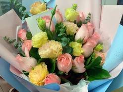 夜上海论坛6朵粉玫瑰满天星混搭花束,如图 |