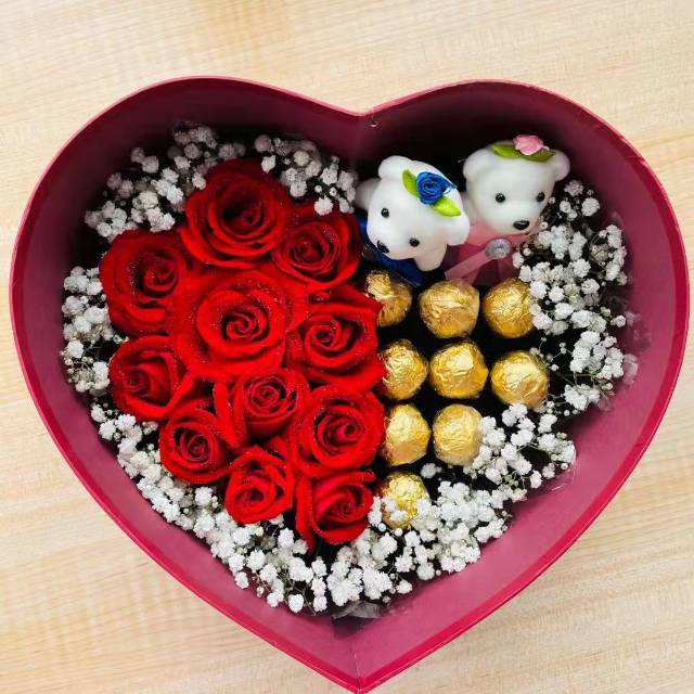 夜上海论坛11支红玫瑰加9颗费列罗2个小熊心型礼盒 |