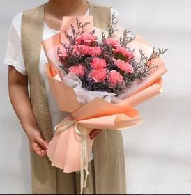 11支粉康乃馨4支红玫瑰花束,如图 |