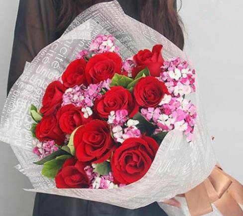 11朵红玫花束如图,花要新鲜 |