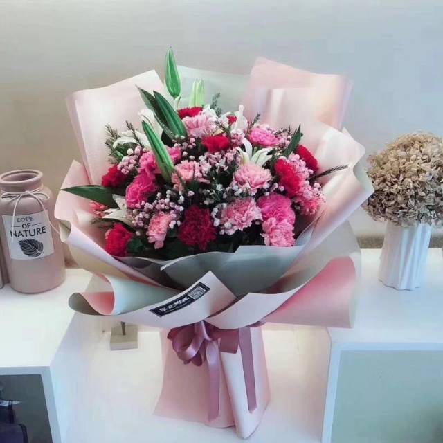 夜上海论坛19支红粉康乃馨混搭+1支多头百合,如图制作 |