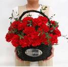 33朵红色康乃馨手提花篮,如图包装,有卡片,8月1日11点按时送达 |