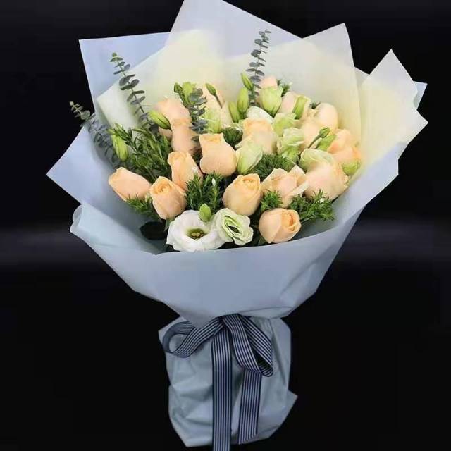 11朵香槟玫瑰混搭洋桔梗, 款式包装如图 花材新鲜 |