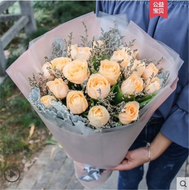 7支香槟玫瑰2支粉玫瑰花束,如图 |