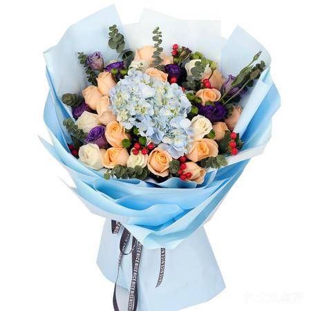 夜上海论坛15朵香槟玫瑰 6朵白玫瑰 7朵紫玫瑰 2支百合混搭花束 |