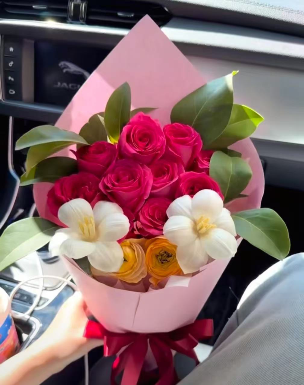 9朵香槟玫瑰红玫瑰混搭花束 如图 |