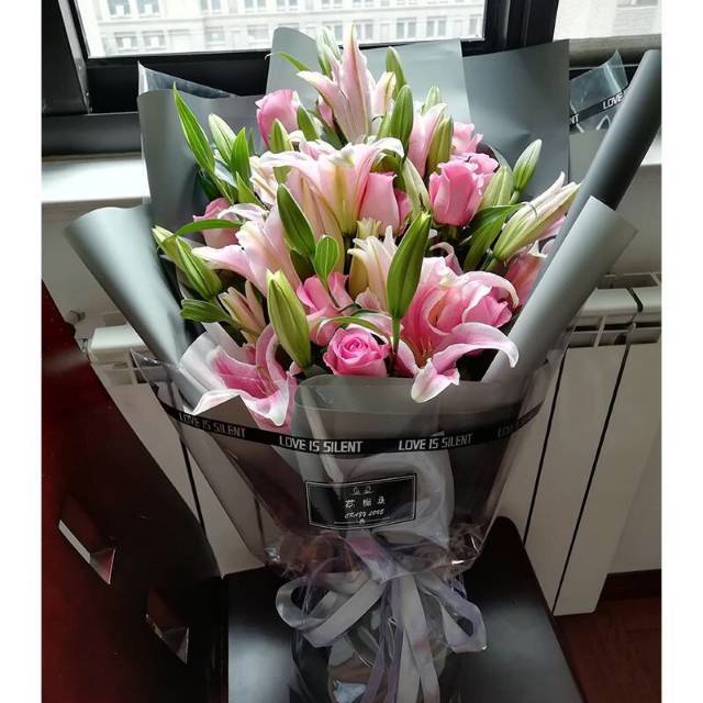19朵粉百合混搭粉玫瑰 款式包装如图