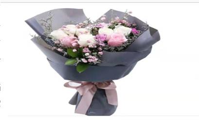 7朵白玫加2朵粉玫花束,如图做 |