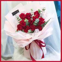 11朵红玫瑰花束,花材新鲜,包装大气,有卡片,如图 |