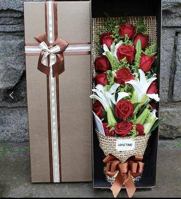 夜上海论坛9朵红玫瑰花束如图包装 |