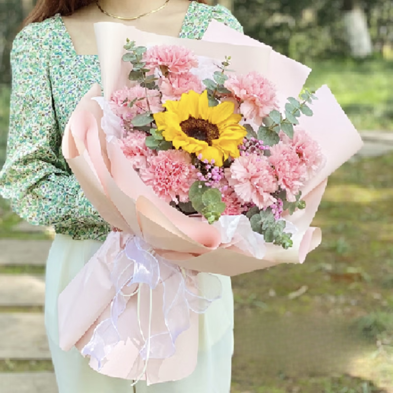 9朵粉玫瑰2朵白玫瑰混搭满天星花束 |