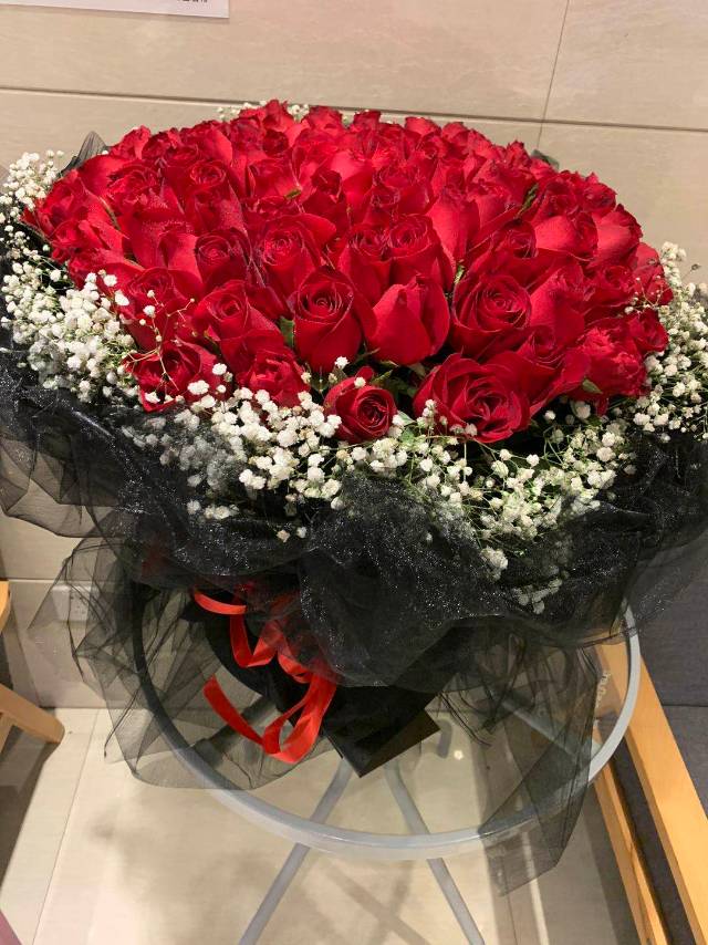 夜上海论坛33朵红玫瑰满天星花束,如图包装 |