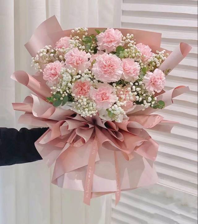 11支粉康乃馨4支红玫瑰加5朵白百合花束,如图包 |