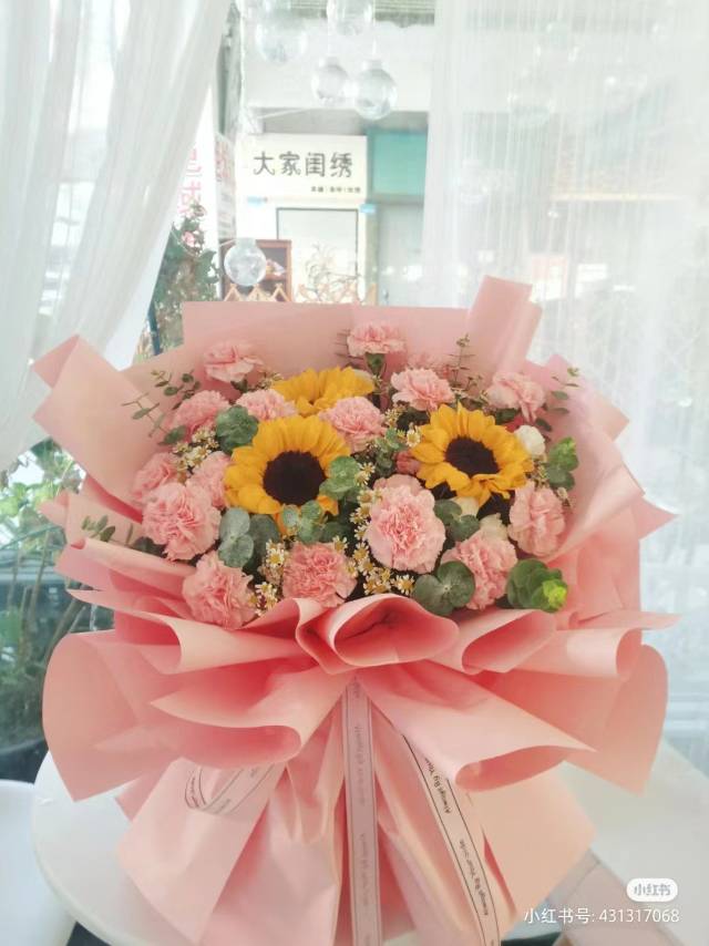 夜上海论坛9支粉康乃馨3支向日葵花束*6束 |