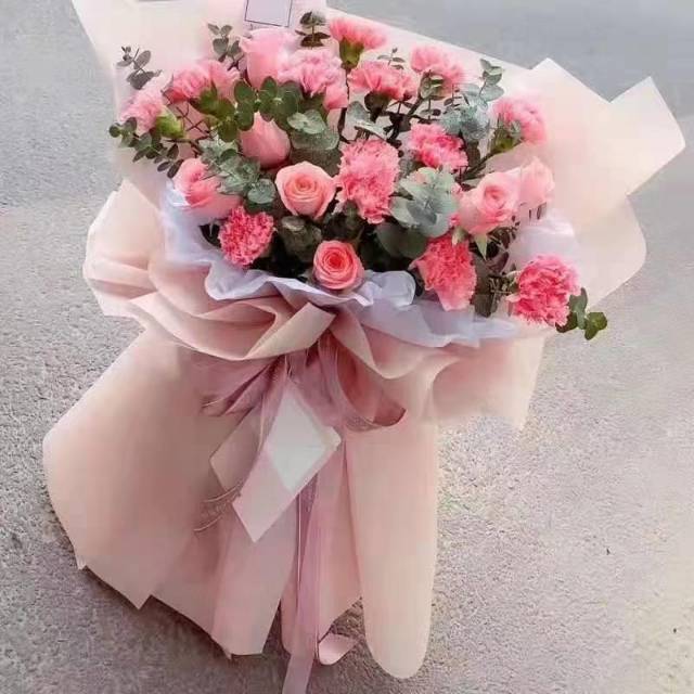 21支粉色康乃馨粉玫瑰混搭花束 ,如图 |