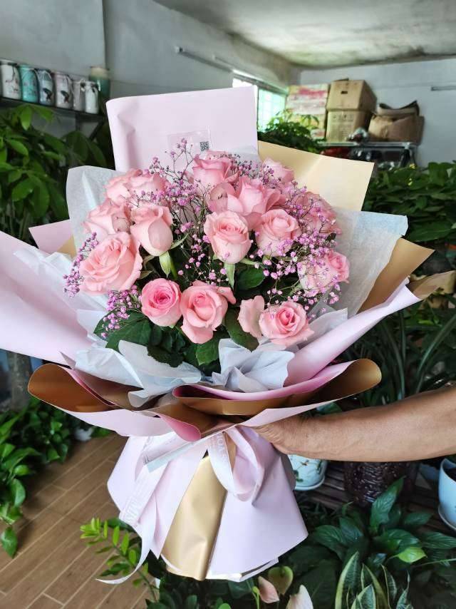 19朵粉玫瑰花束如图包装 |