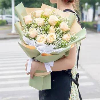 16朵香槟玫加白星鲜花束。如图款式包 |