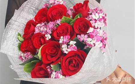 11朵红玫瑰花束,花材新鲜,包装大气,有卡片,如图 |