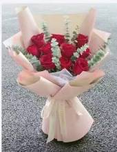 11朵红玫粉色包装纸配满天星,花按图二的花,包装用粉色的 |