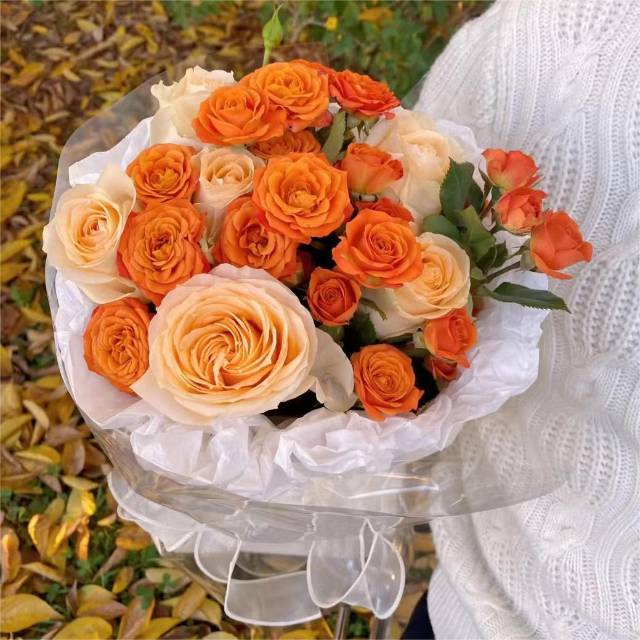 6枝香槟玫瑰橙芭比混搭花束