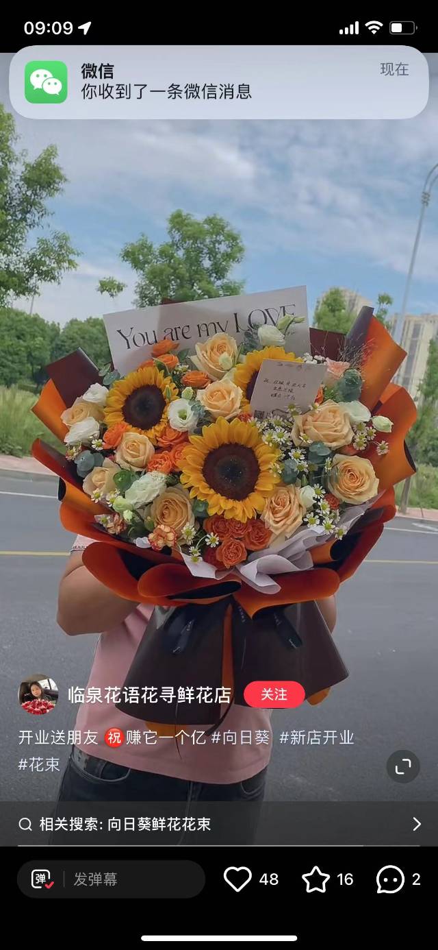 11支香槟3支向日葵配洋桔梗橙芭芘花束,如图