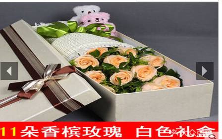 夜上海论坛11朵香槟玫瑰2小熊礼盒装 如图