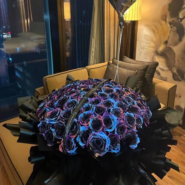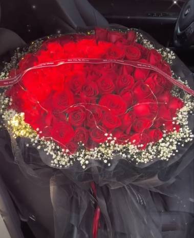99朵红玫瑰满天星混搭黑纱包装加彩灯 按图 |