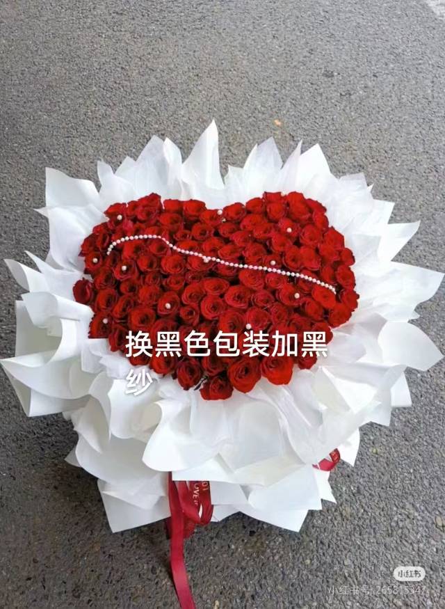 99朵红玫换成黑色包装纸加黑纱的。 |