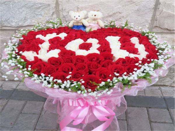 夜上海论坛99朵玫瑰花束带两只小熊 |