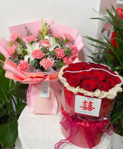 夜上海论坛红玫瑰订婚花束 康乃馨百合花束 按图包装 |