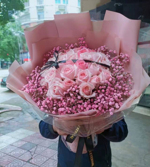 33朵代安娜粉玫加白星鲜花束,如图包 |